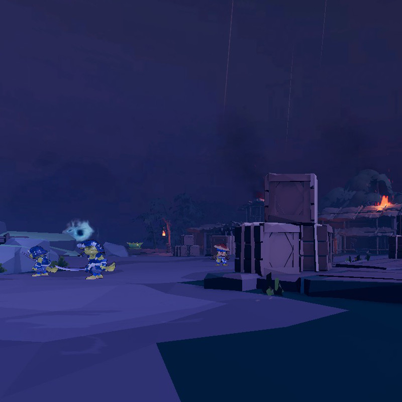 敵を全滅させたらクリア。敵はプレイヤーより立方体を優先して攻撃する。