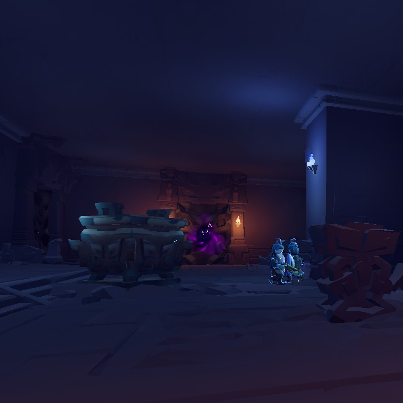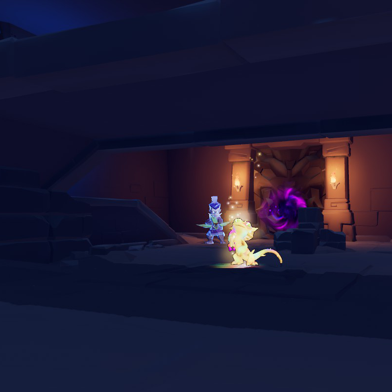 ダンジョンの壁面にある光る亀裂を破壊すると、ボーナスアイテムが隠された宝庫に通じるゲートが開く。