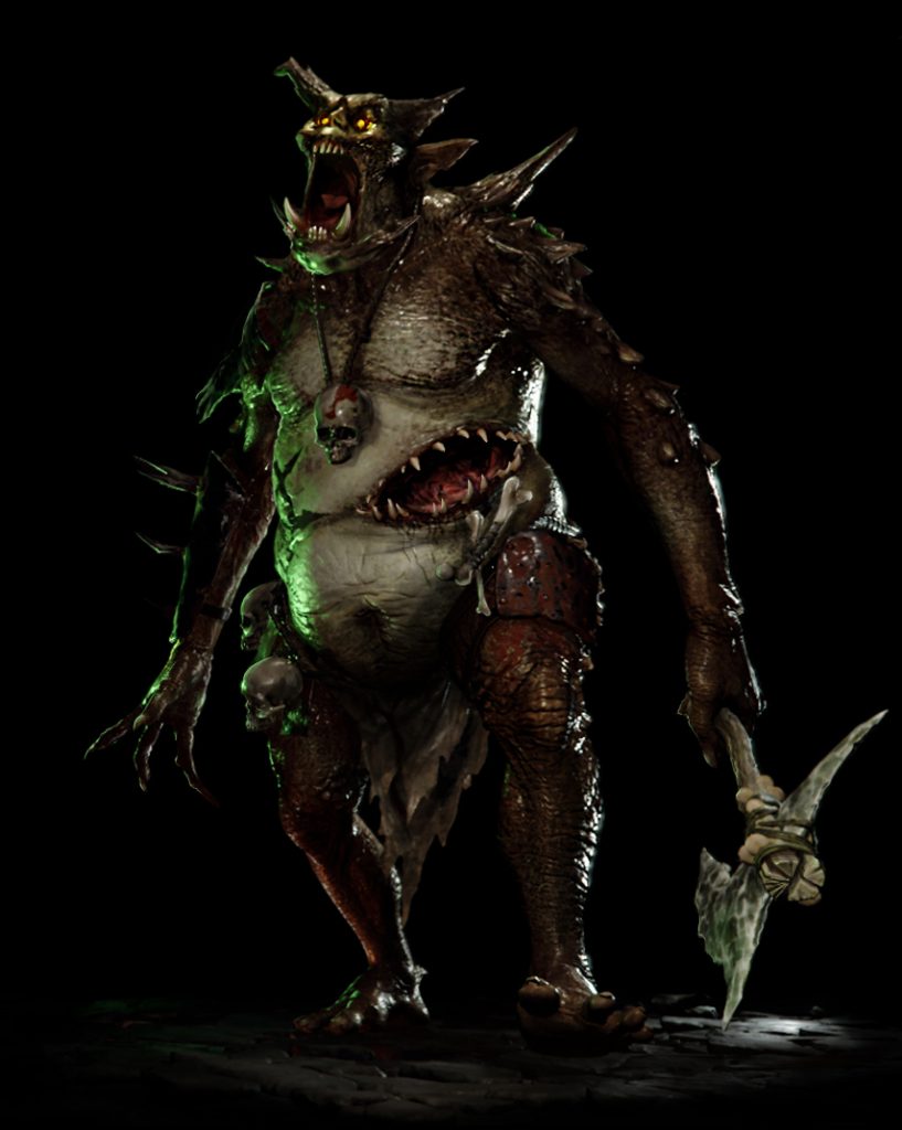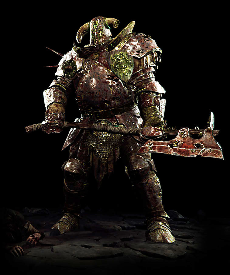 大きな両手斧を装備し、硬い鎧に身を包んだケイオス兵